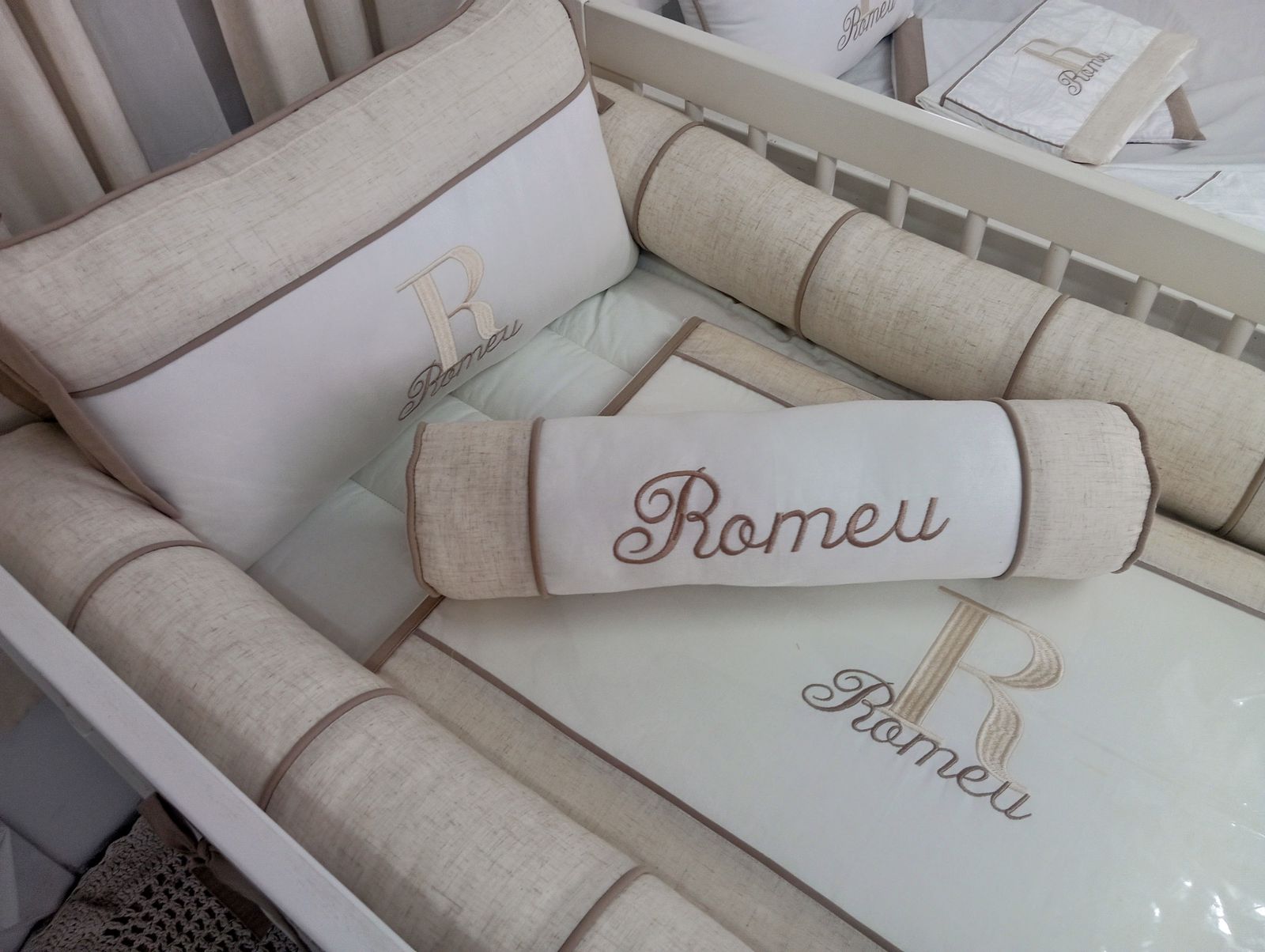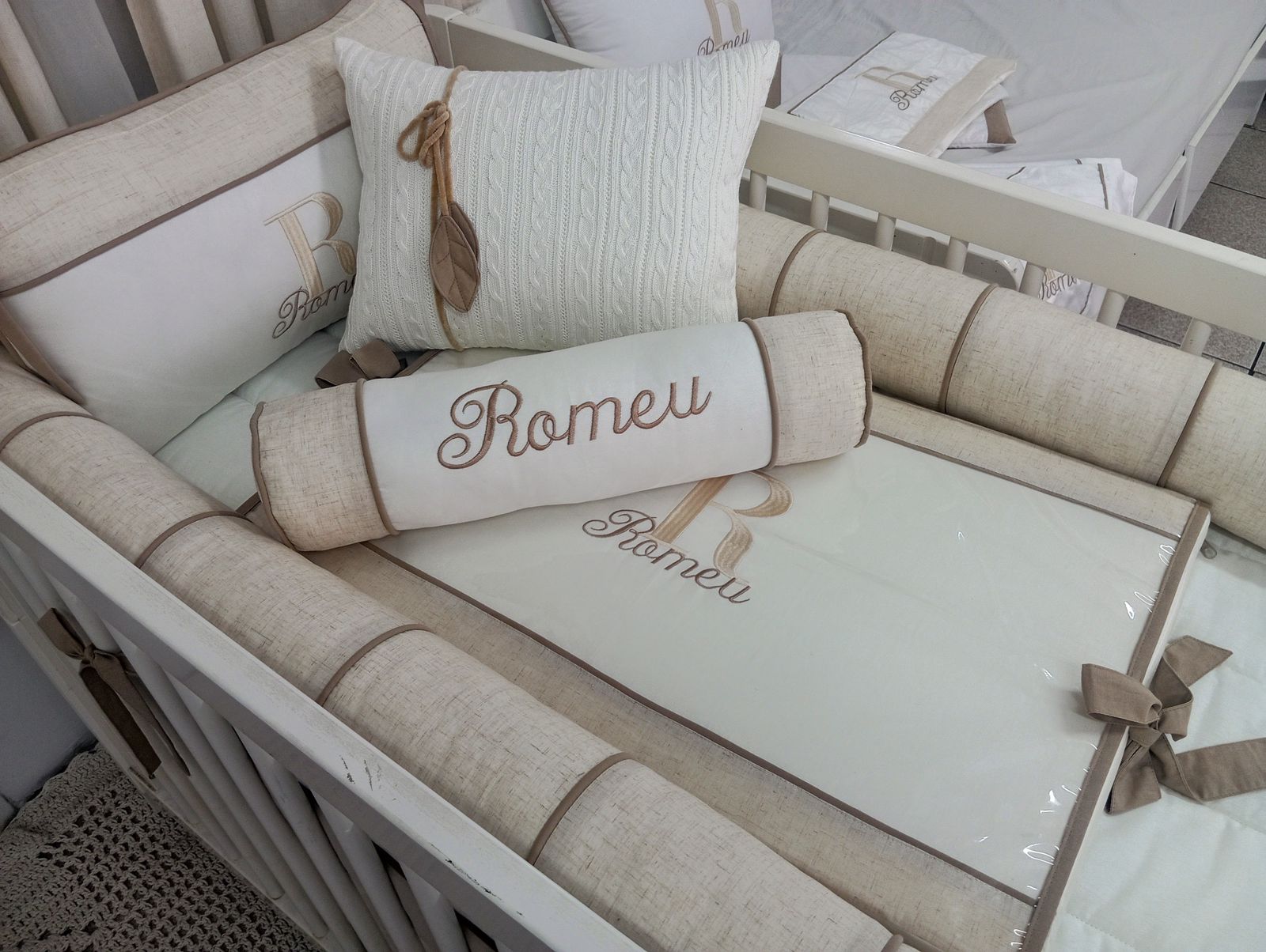 Atenção: As almofadas e peças fora da lista, que aparecem na foto, são figurativas e podem ser adquiridas em separado. Caso queira , vc pode pedir o Edredom no lugar do trocador.